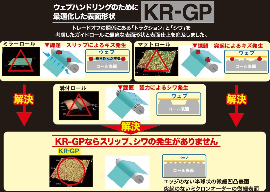 光学用フィルムなど薄膜フィルム生産時のスリップキズを解決する『特殊梨地クロムめっき』です。 高速搬送…