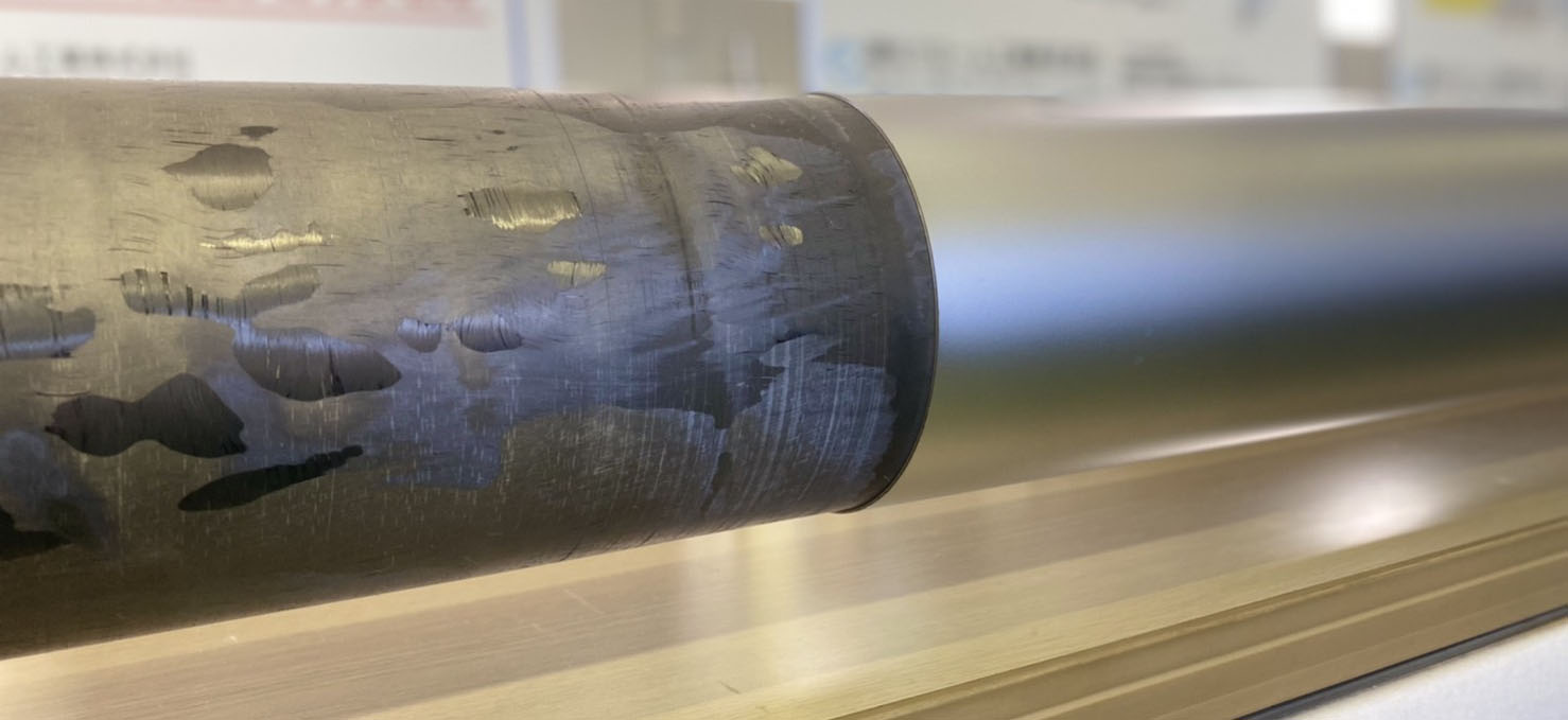低たわみ・超軽量化を実現した『カーボンロール』 弊社設計カーボンロールは直接めっきを行う為 再めっきが容易でありロール1本の寿命が長くなります。 アヤメ溝・へリンボン溝・リング溝などご要望に合わせて溝加工可能。 弊社の表面処理と合わせて超鏡面~梨地仕上げまで対応可能です。